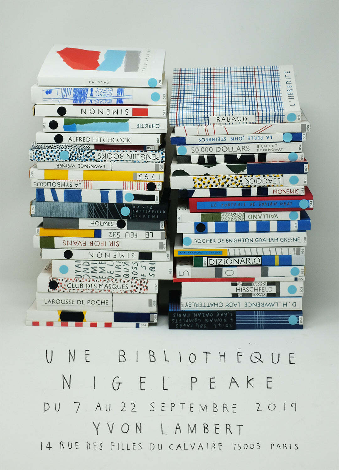 ナイジェルピークがパリ、リュクサンブール公園で毎日集めた古書100冊のうち24冊に自身のデザインしたカバーを装丁した作品になります。裏から見た古書がそのまま裏面に印刷されている珍しい両面印刷で、どちらのデザインも楽しめます。